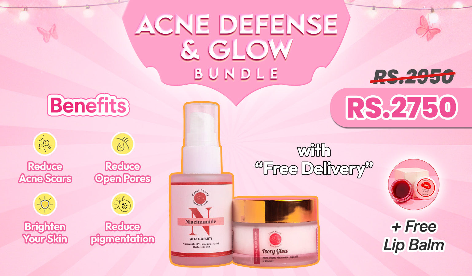 Acne defense & glow kit + Free lipbalm